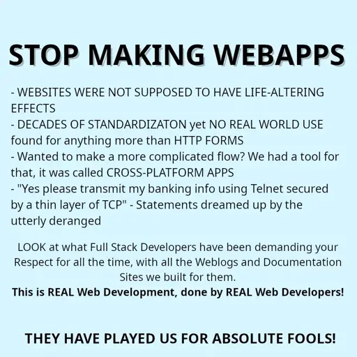 somerandomperson@lemmy.dbzer0.com to Programmer Humor@lemmy.ml · 8 days agoelectron.jxllemmy.mlimagemessage-square10linkfedilinkarrow-up1133arrow-down115