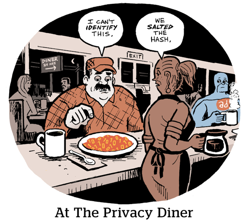 Your comment made me curious, so I tracked it down. The “comic” was used with an article on differential privacy written by a publication called “ad exchanger” and the ad symbol on the outfit is their logo.