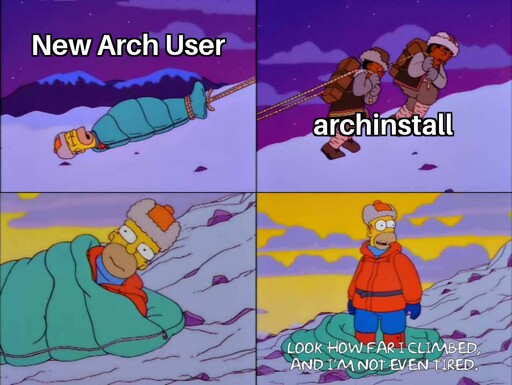 Installing arch without archinstall is way too much fucking work. I’d much rather spend time fixing the 10% greater likelihood of encountering issues post install than doing all that fucking bullshit manually. The command line is better for a lot of things but configuring partitions and mount points is not one of them. I demand a fuckin gui for that stuff.