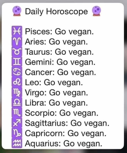arrow-up1-16arrow-down1imageThe signs are aligned.lemmy.worldMilitantVegan@lemmy.world to Memes@lemmy.ml · 2 years agomessage-square5linkfedilink