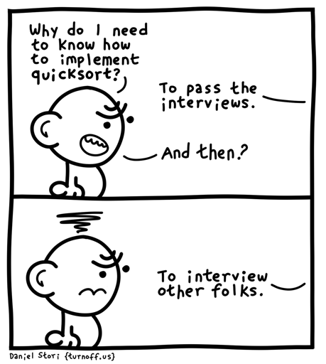☆ Yσɠƚԋσʂ ☆@lemmy.ml to Programmer Humor@lemmy.mlEnglish · 9 months agoDev Interviewslemmy.mlimagemessage-square0linkfedilinkarrow-up13arrow-down10file-textcross-posted to: programmer_humor@programming.dev