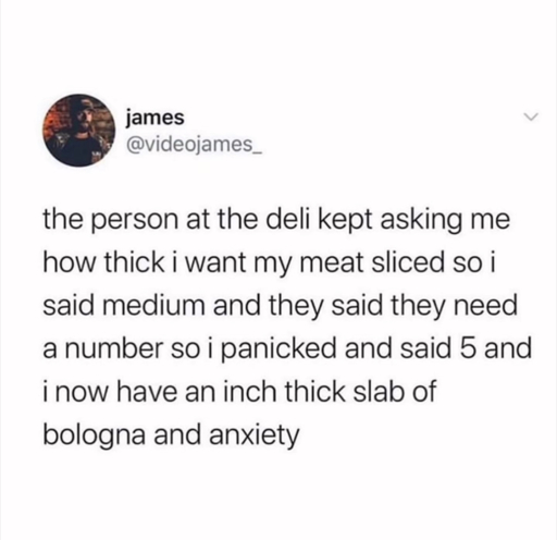 Yeah, that guy sucked. I have no fucking clue what the settings are on the deli slicer, and I’ve never had a deli person not just slice a bit and let me see if that’s what I wanted.