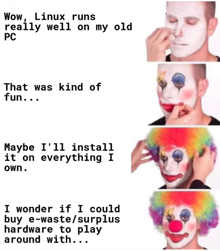 minus-squareBob Smith@sopuli.xyzlinkfedilinkarrow-up7·1 month agoMake friends with some PC repair people. Depending on where you live, a LOT of Win10 stuff is getting thrown out right now. If you present yourself as an alternative to recycling/scrapping, you might get a good deal.
