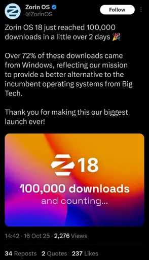 Yeah, I actually booted Zorin and started the install process last night, intending to put it on my secondary SSD, but instead of the usual “where would you like to install?”, the prompts were written in a way that didn’t assure me that it wasn’t going to mess with my primary SSD, then I ran out of time and bailed for the night.