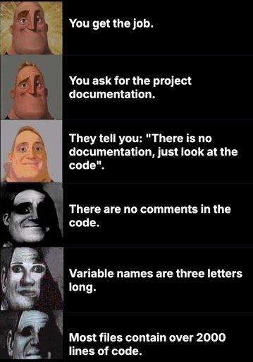 I think we’re all just dogshit but think we’re better than the next person, it’s like driving. I’m a “comment if there’s no way to make it readable” kinda guy, I work with some “comment and don’t bother to make it readable because there’s comments” people. We all suck. I probably forget to comment on unreadable places sometimes, or overestimate readability he either doesn’t update comments so they’re out of date or the code is so gibberish that a comment didn’t help.