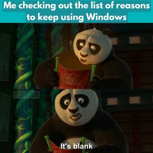 arrow-up11arrow-down1imageThe list of reasonsplus-squarelemmy.mlKory@lemmy.ml to linuxmemes@lemmy.world · 7 months agomessage-square1linkfedilink