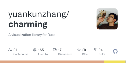 U+1F914 🤔@lemmy.world to Rust@programming.devEnglish · 2 years agoCharming: A visualization library for Rustplus-squaregithub.comexternal-linkmessage-square0linkfedilinkarrow-up10arrow-down10